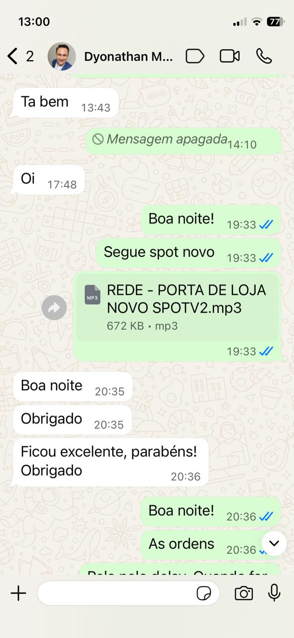 Áudios promocionais para tocar dentro da loja, destacando ofertas e campanhas do dia.